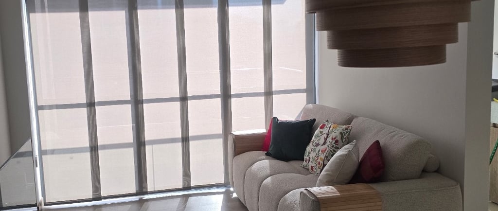 Ventanas amplias suelen verse mejor con panel japonés o enrollables.